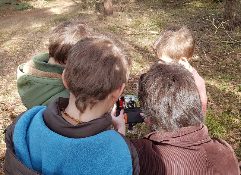 Een slim idee van mij was om de ipad mee te nemen het bos in. Ik had thuis de qr scanner er alvast op gezet. Ik vond dat best slim van mezelf, want ik dacht nog ' in het bos gaat dat niet'. Had er natuurlijk niet bij stil gestaan dat je ook internet nodig hebt voor het bekijken van die qr codes op You Tube. 🤦♀️ Met andere woorden, we hadden niks aan de ipad. Gelukkig hadden we beide onze GSM mee dus deden we het maar daar mee.
